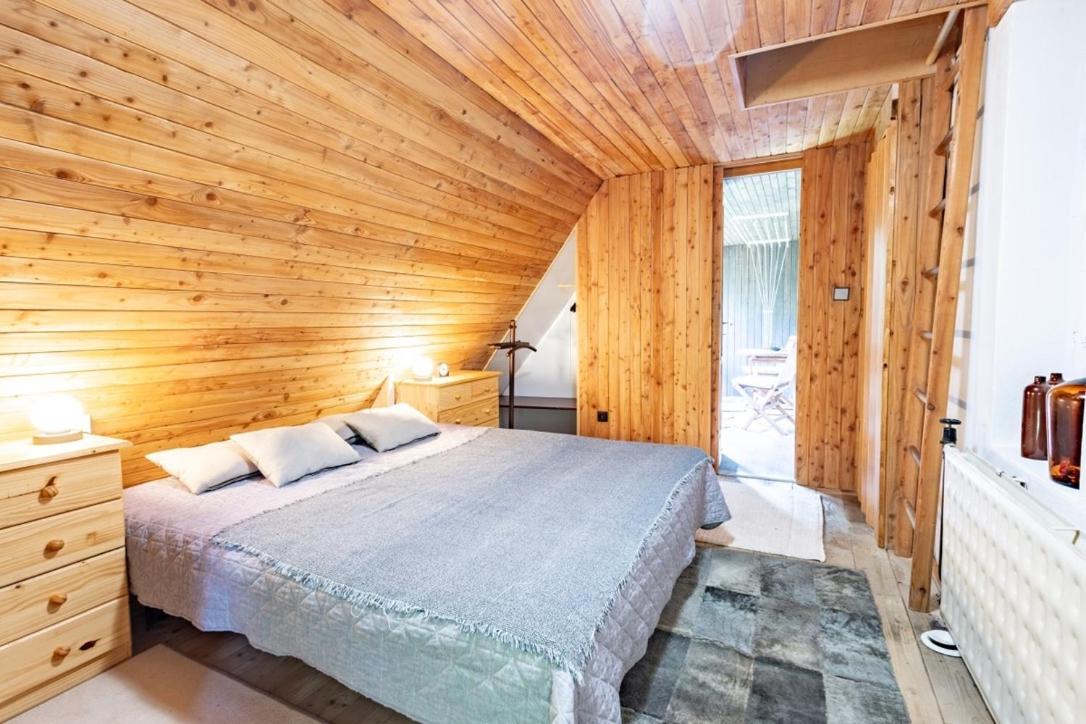 The chalet has an outdoor fireplace and a picnic area.